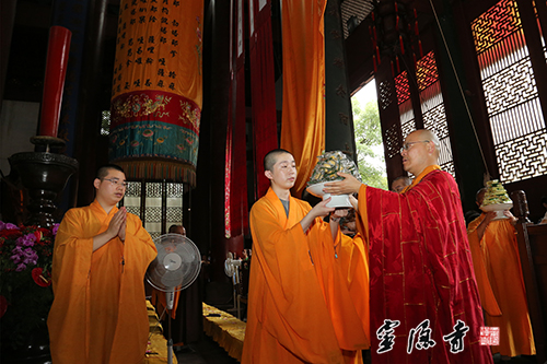 当日凌晨早殿期间,还举行了一年一度的请职仪式,方丈光泉大和尚依祖制,如法如律,礼请继云法师等耆宿大德担任丛林执事。
