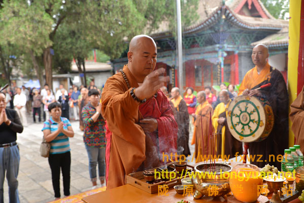 8月4日上午8:30由浚源寺方丈理因法师主持了本次法会的洒净仪式,近300多位信众随喜参加。