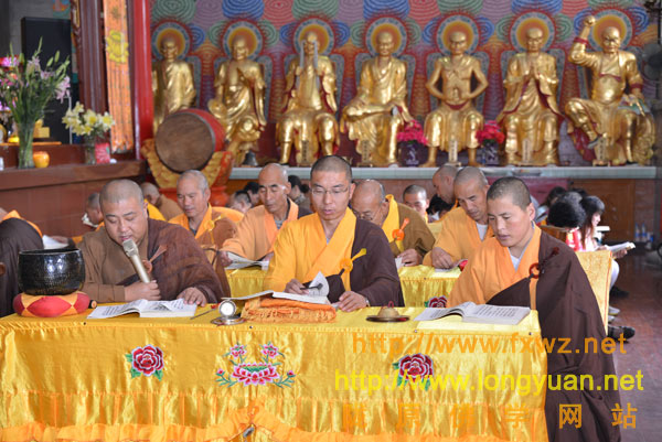 浚源寺首座理量法师领众讽诵《妙法莲华经》