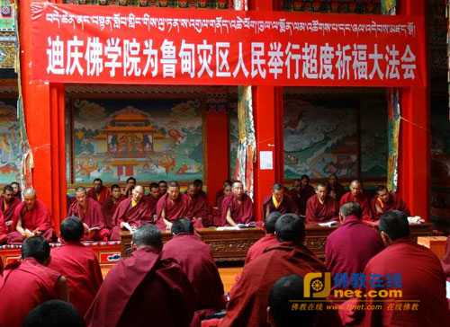 云南佛学院迪庆藏传佛教分院为鲁甸灾区人民举行超度祈福法会