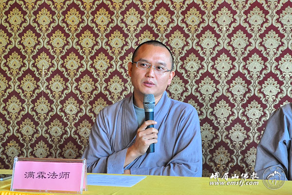 满霖法师在开示中,感恩以种种因缘来此参加夏令营的营员们,并介绍了夏令营的活动安排,他说,大家要珍惜这次与法师面对面交流的机会,要放下世间一切俗务,静下心来,学习佛法、体会佛法,希望这七天的经历能使大家对人生、世界有新的认识,更希望大家能了解普贤菩萨的行愿精神,通过交流、发愿,做“行愿人”,追求一个圆满的人生。