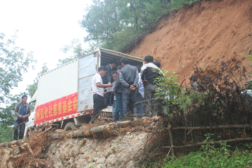 中午12点钟开车行驶在蜿蜒盘旋的山路上,准备前往火德红镇李家山村了解关于灾民的安置情况,行驶道路的宽度不足5米,道路的一边是直耸入天的峭壁,而另一边就是深深地峡,鼓鼓的山体使得行驶的车辆不敢靠山体太近,然而旁边就是悬崖,霎时间,心都提到嗓子眼,中午的太阳炙热,空气中能感觉到氧气的稀薄,不由的感觉到心闷气短,10公里的山路,看似很短,然而自己的身上却在直冒冷汗,陡峭的山崖,崎岖的山路,一路艰辛。