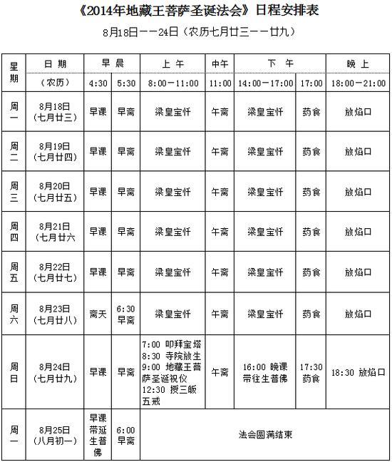 1、自农历七月廿三(公历8月18日,周一)开始打佛七,拜梁皇宝忏;廿九庆祝法会;