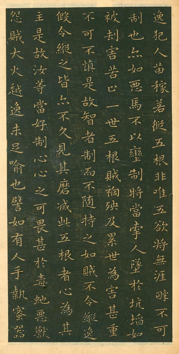 《佛遗教经》全称《佛垂般涅槃略说教诫经》,内容为释迦牟尼临终时对弟子所作的教诫。此拓片版经文书法,传为王羲之手笔。此帖通篇秀雅婉丽,规整隽洁,墨色浓郁古厚,刻工传拓均佳,当为宋末佳拓。