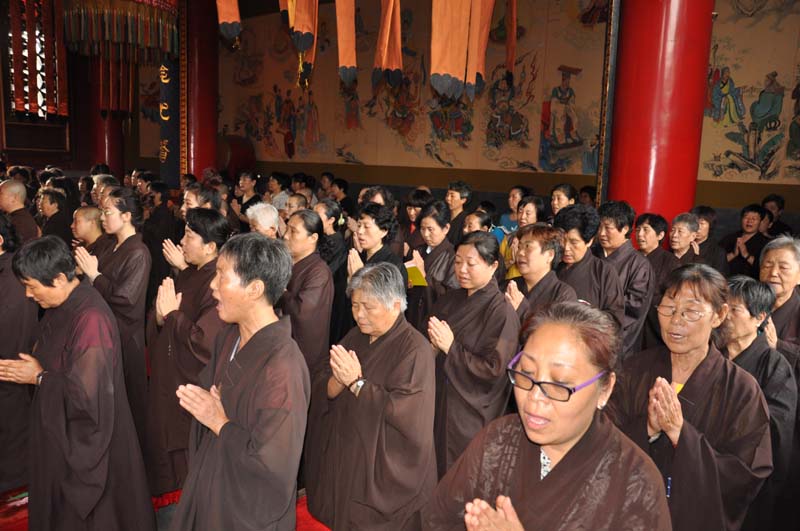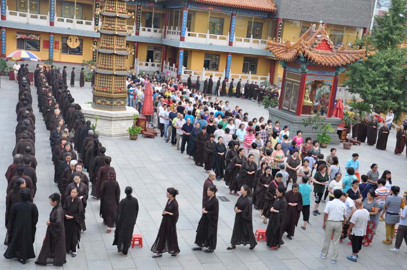 2014年8月8日(农历七月十三),正值大势至菩萨圣诞吉日,天津荐福观音寺全体僧众、居士善信1500余人启建昼夜精进念佛活动。为弘扬净土法门、力倡诵持弥陀圣号、念佛止静、众善同修,在一日一夜期间精进修持、勇猛精进、广积道粮。大众字句分明、无有间断,体悟念佛三昧。常住向大家提供了夜间餐食,护七居士40人发心为大众服务,道场圆满、法喜充满。