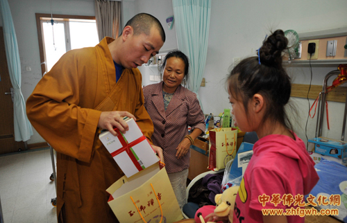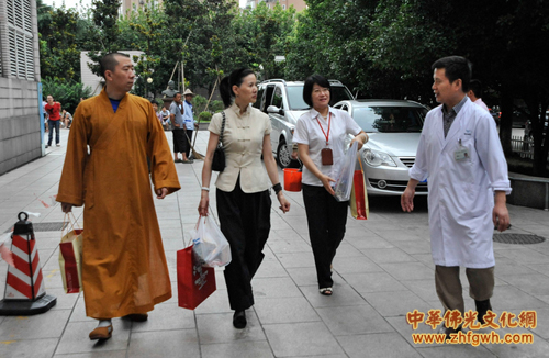 2014年8月8日上午,觉群慈爱功德会副理事长马玉红居士、功德会慧静法师及工作人员一行带着礼物再次赴上海儿童医学中心看望孤儿井说说,并与其奶奶谈心,宽慰她紧张及担忧的心情。