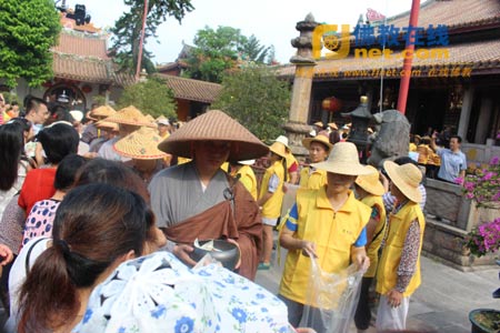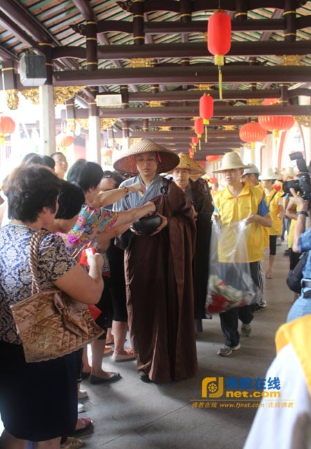 2014年8月17日,农历七月二十二日,广东潮州开元镇国禅寺第七期托钵行脚慈济活动如期举行,再现了佛陀时代比丘僧团的托钵行脚生活,同时,藉助托钵行脚因缘与信徒居士接触,给予布施种福田及说法的机会,藉着托钵行脚,深入社会,了解民瘼。
