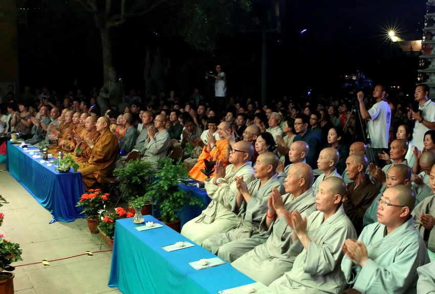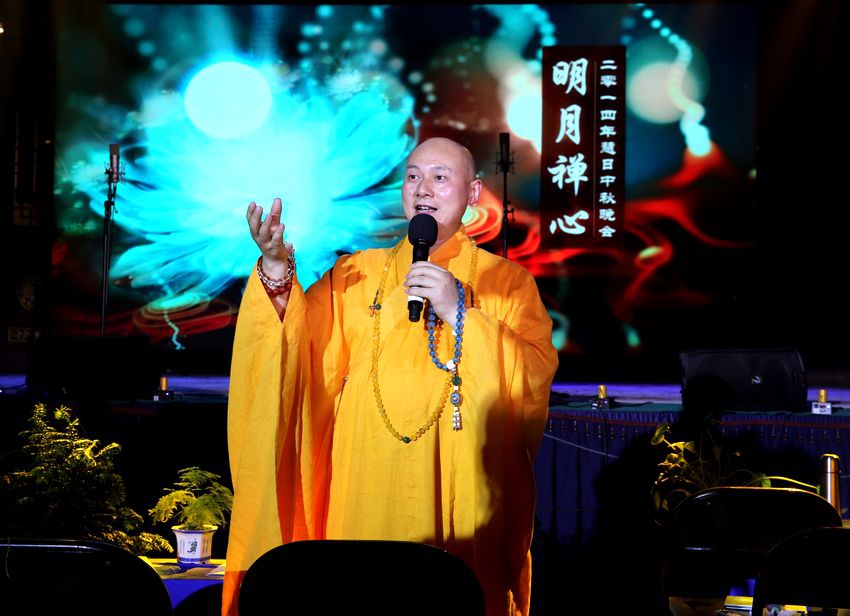 明月禅心.二零一四年慧日禅寺庆中秋、赞佛德佛教梵呗音乐会在上传下喜法师的祝福中拉开序幕,特约著名表演艺术家游本昌老居士参加晚会,以一曲《济公游记》主题曲"心与莲花随"供养三宝,来自全国各地的四众弟子欢聚一堂,共度中秋佳节。自古以来,明月承载着千里的乡愁,今夜的慧日之月,它承载着“华枝春满,天心月圆”这一人生终极目标,温润清凉的明月光,化消了人间热恼,寄托了人们的情感,承载着佛陀的无上悲愿与菩提心,把所有美好愿望都在月光中得到体现。以此梵呗妙音恭赞佛德的殊胜功德,回向世界和平,灾难消除,风调雨顺,国泰民安。