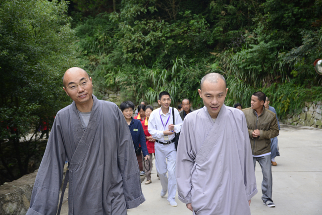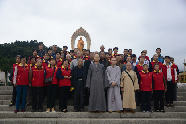 9月19日上午,应东林寺之邀前来为第四届净土宗研习班学员授课的敦煌雷音寺方丈道证法师,利用教学之余,带领从敦煌来的四十多位居士参访了东林大佛。东林寺净土宗研习班班主任德一法师陪同参访。