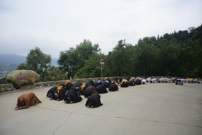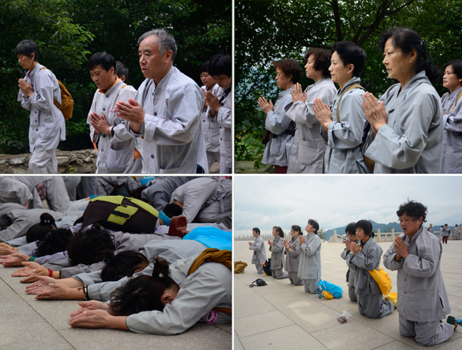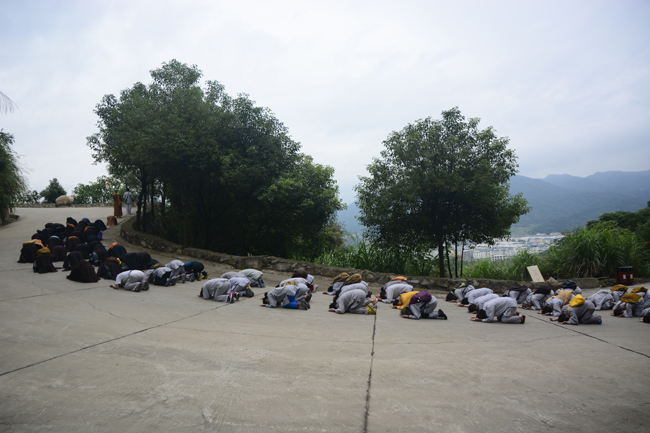 印光大师教导佛子:“欲得佛法实益,须向恭敬中求。有一分恭敬,即消一分罪业,增一分福慧。有十分恭敬,即消十分罪业,增十分福慧。” 息心寺的缁白二众,在3个半小时的礼佛过程中,面对乌云密布、山雨欲来的天气,不急不缓,至诚恭敬地走好每一步、顶好每一礼,收获的是沁人心脾的清风,和信切愿真的法喜。