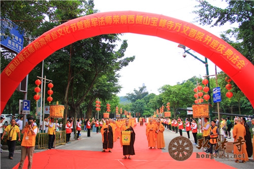21日上午8时30分,新军法师晋院升座仪式在西樵山山门前举行,仪式伴随梵音佛乐,依照晋院仪轨圆满完成。新军法师是高僧又果老和尚爱徒,如今众缘具足,续佛法身慧命,继承老和尚大德遗志,带领宝峰寺两序大众担荷如来家业,令正法久住。