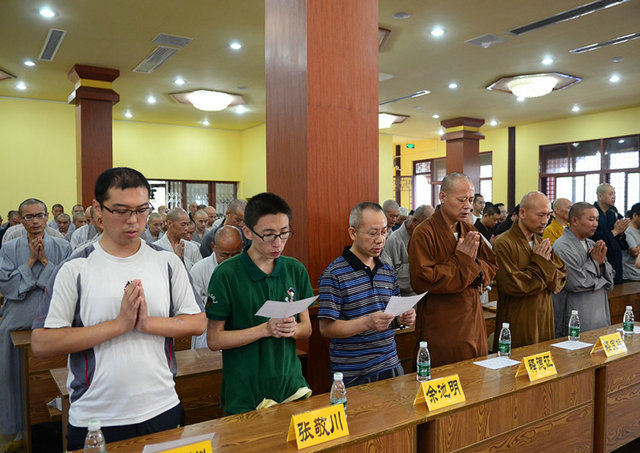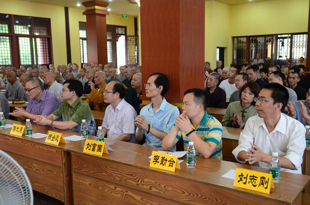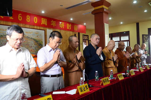 在主席台就坐的有东林寺方丈大安法师、灵岩山佛学院常务副院长弘法法师、新加坡居士林延续法师、北天目灵峰讲寺住持慈满法师、东林寺首座本通法师、东林寺净土苑监院觉行法师、中国人民大学温金玉教授、江西省社科院哲学所赖功欧所长。东林莲社负责人德凯法师主持了开幕仪式。弘法法师、温金玉教授先后发言,缅怀远公德业,表达了对净土宗初祖的尊崇仰慕之情。