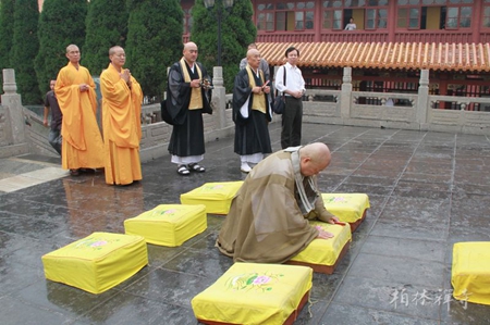 2014年9月11日上午,日本临济宗妙心寺派德源寺住持岭兴岳长老朝礼祖庭河北赵县柏林禅寺,受到柏林禅寺方丈明海法师与监院利生法师的热情接待。
