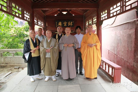 会谈后,岭兴岳长老一行在明海法师陪同下到问禅寮瞻礼净慧长老舍利并合影留念。