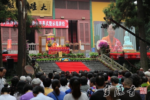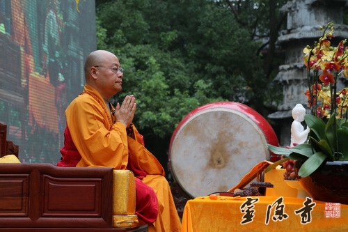 当天上午10:00,开幕式结束后,现场四众弟子虔诚合掌,同诵佛号,在庄严仪仗的迎请下,光泉法师登法座为在场的听众开示《六祖法宝坛经》,说明要解决生命的本质问题,不能向外求,要向自身的般若智慧来求,相信自身即是佛,对自己的般若自性坚信不疑。《六祖法宝坛经》在今天还有其深刻的现实意义,它告诉我们要像慧能祖师那样“应无所住而生其心”,并知行合一,以出世的心做入世的工作,学会放下,珍惜当下,将佛法真正运用到日常工作、生活中去。