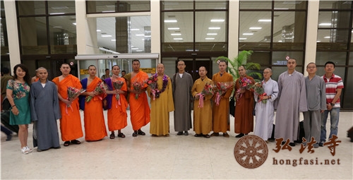 13日,斯里兰卡当地时间晚上11点,印顺法师一行抵达科伦坡国际机场,众多中国留学僧人手捧鲜花接机。