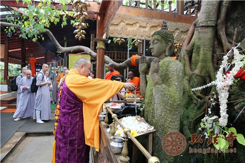 14日上午9点,印顺法师一行前往岗嘎拉玛寺参访,岗嘎拉玛寺方丈精心地安排了盛大的欢迎仪式,以独特的传统民族舞于寺庙大门迎接印顺法师的到来。印顺法师一行前往大殿礼佛上香,浇灌菩提树,共同为两国人民祈福。此株菩提树是释迦牟尼佛夜睹明星打坐悟道的树木分支,后再移植回菩提迦耶。岗噶拉玛寺长久保持与汉传佛教频繁的互动,是与汉传佛教交流最多的寺庙。