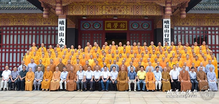 峨眉山佛学院常务副院长满霖法师报告佛学院办学情况,办学成果和长远规划。魏道儒教授代表佛学院老师发言,他说,峨眉山佛学院具有管理规范、专业设置合理、师资力量雄厚、对外交流畅通几大特点,教师与学僧建立起优势互补、教界与学界共同发展、共同推广佛教文化的水乳交融的新型关系。希望峨眉山佛学院成为一个教界精英聚集、法门龙象涌现的道场,一所促进社会精神文明的佛教名校。向学法师代表诸山大德希望学僧们一要感恩,感恩三宝的加持,感恩国家政策好,感恩相关领导的支持、施主的供养;二要珍惜,珍惜师生、同学相聚相处的因缘,珍惜学习的条件和机会,为将来弘法积累丰富的资粮。