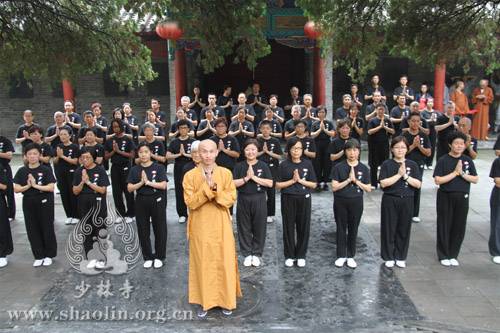 2014年9月8日(农历八月十五)早8时,70名身穿印有加拿大国旗和少林禅武中心黑色T恤的武士在少林寺方丈室前整齐列队、双手合十、表情庄严。在加拿大少林禅武中心负责人延冲法师的率领下,加拿大少林海外弟子即将正式开始少林寺朝拜、体验之旅。