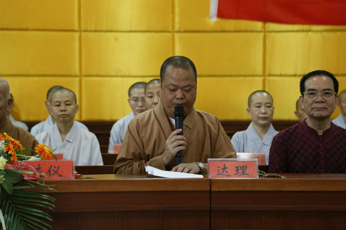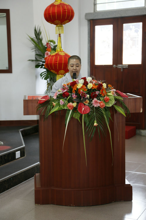 会上,广东尼众佛学院院长达理法师、陆丰市民族宗教事务局局长曾志平先生等分别做了讲话。达理法师在会上说到:“以戒为师”是佛陀最后的嘱托,戒律也是佛教长久住世和健康发展的根本,社会和谐发挥积极作用的基础和前提,同时也是僧众团结共事的依托和保障。所以本学期,广东尼众佛学院新增设了律学班,更加注重学修并进,发扬佛教的积极作用,自觉规范自身的行为,去净化众生的心灵,为促进社会和谐作贡献。