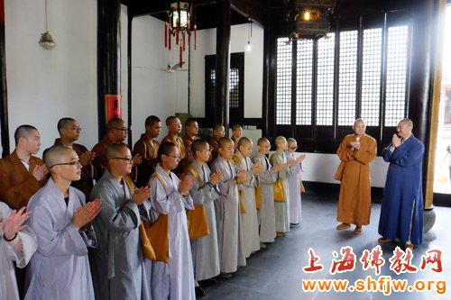 照诚大和尚询问了上海佛学院本届招生情况,就佛教传教形式和当前面临的挑战和机遇,向学僧们做了精彩的开示。照诚大和尚勉励大家爱国爱教,努力学习,遇事常思考,学习多用心,在学生时代学好本领,掌握更多的知识,待学成后回报祖国,回报社会,回报佛教。照诚大和尚勉励大家多发心的、发大心,学习效仿历代先贤,为佛教的未来承担,为自己的慧命负责。