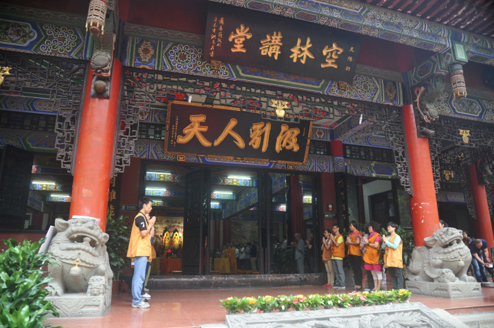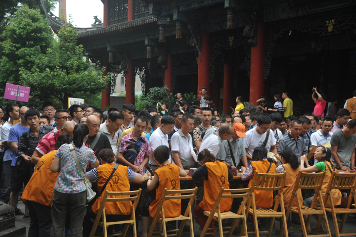 2014年9月7日,成都文殊院除了迎来中秋假期游客高峰,还迎来了近千名信众参加文殊院2014年九月千人皈依法会。法会恭请文殊院方丈宗性大和尚任主法法师,为大众传授三皈依。大和尚还借中秋吉日,为大众做了关于中秋、礼仪、人生及学佛的精彩开示。