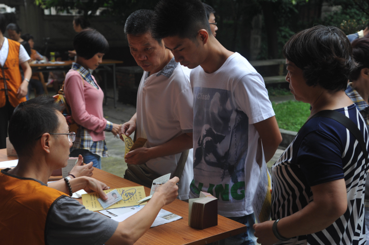 志工现场为皈依信众办理皈依证