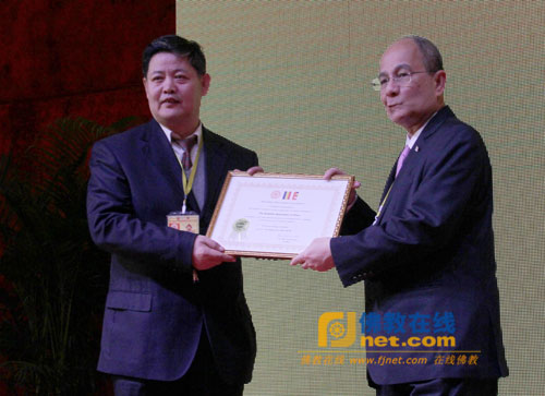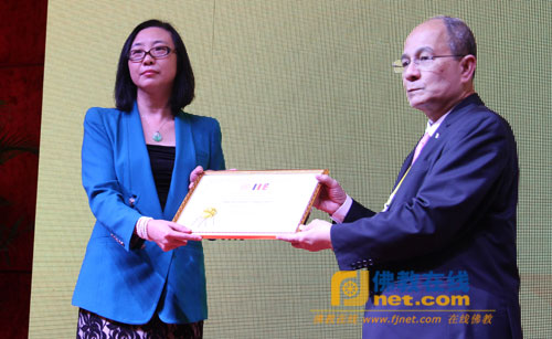 世佛联秘书长攀洛·泰阿利向中国佛教协会颁发感谢状