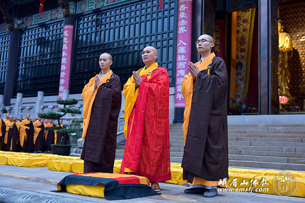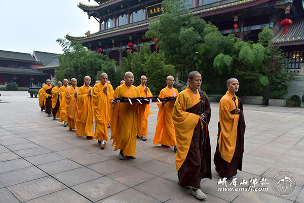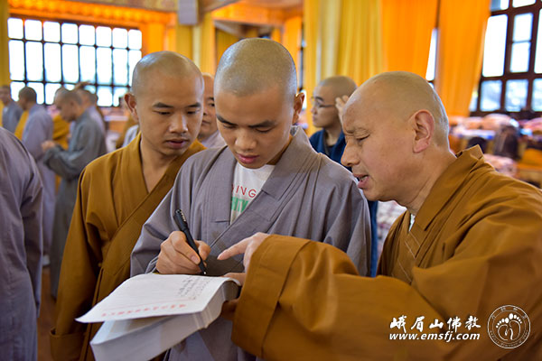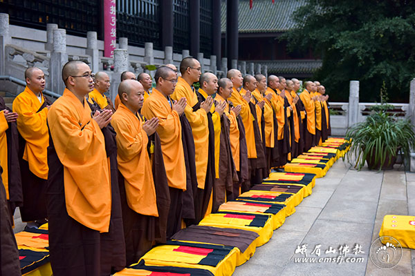 2014年10月13日,农历九月二十,四川省第十九次传授三坛大戒法会进入第二天。本日的流程是:上午请引礼师、下午编班、晚间道喜看单。
