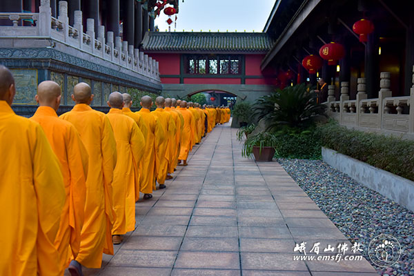 晚课毕,永寿大和尚率大佛禅院各大班首执事及两序大众向引礼师道喜并看望引礼师及新戒们的住宿情况(看单)。