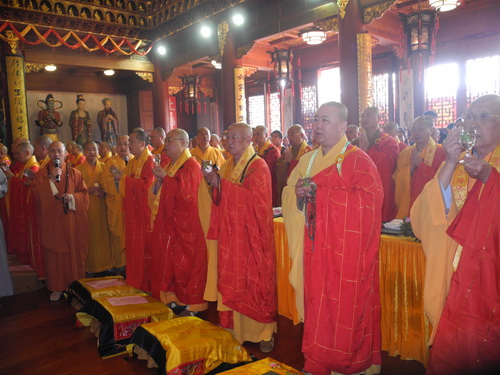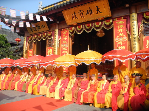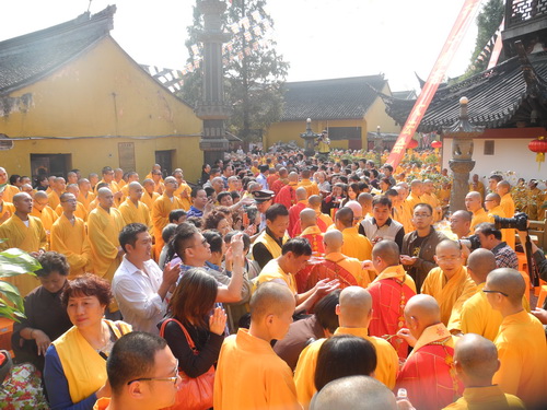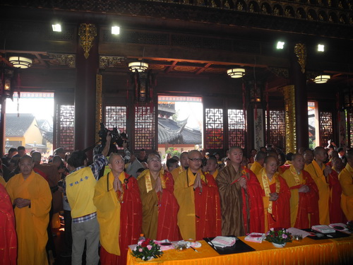 出席庆典法会的高僧大德、护法居士有:中国佛教协会副会长、上海市佛教协会会长、玉佛禅寺方丈觉醒大和尚,中国佛教协会咨议委员会副主席、江苏省佛教协会名誉会长、江苏省无锡市祥符禅寺住持无相长老,中国佛教协会咨议委员会副主席、江苏省佛教协会名誉会长、常州天宁禅寺方丈松纯长老,广东省佛教协会副会长兼秘书长、广州大佛寺方丈耀智大和尚,上海市佛教协会副会长、龙华寺方丈照诚大和尚,上海市佛教协会副会长、法藏寺住持光慧大和尚,上海市佛教协会副会长、上海居士林林长周富根居士,上海市佛教协会副会长、沉香阁方丈定慧大和尚,重庆市佛教协会副会长、重庆华严寺方丈道坚大和尚,河南省佛教协会副会长、开封大相国寺方丈心广大和尚,上海市佛教协会秘书长、宝山寺方丈世良大和尚,天津市佛教协会副会长、玉佛禅寺住持演龙大和尚,苏州包山寺退居方丈贯澈长老,山西五台山佛教协会会长、黛螺顶住持昌善大和尚,福建厦门太平岩寺方丈世澄大和尚,江西省佛教协会秘书长、崇庆寺方丈通能大和尚,福建省罗源圣水寺住持浩宇大和尚,贵州省佛教协会副会长、巢凤寺住持通植大和尚,广东省佛教协会副会长惟信法师,福建省福鼎市佛教协会副会长、昭明寺方丈界空大和尚,福建省福鼎市佛教协会副会长、栖林寺住持德清大和尚,福鼎市乐善寺住持立平长老,温州市佛教协会副会长、头陀寺住持悟智大和尚,江苏姜堰净土寺方丈学贤大和尚,浙江长兴寿圣寺方丈界隆大和尚,无锡惠山寺方丈玉平大和尚,宁波香山教寺方丈佛祥大和尚,浙江嘉兴香海禅寺住持贤宗大和尚,杭州径山寺住持戒兴大和尚,南京方山定林寺住持心融大和尚,浙江大曹王寺住持维华大和尚,浙江凤鸣寺住持净修大和尚以及本寺永久护法:李国庆居士、李金陵居士、李长虹居士、邬久康居士、沈春燕居士、刘永忠居士、魏小宝居士等。