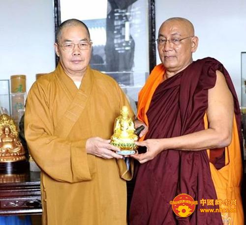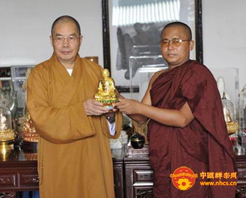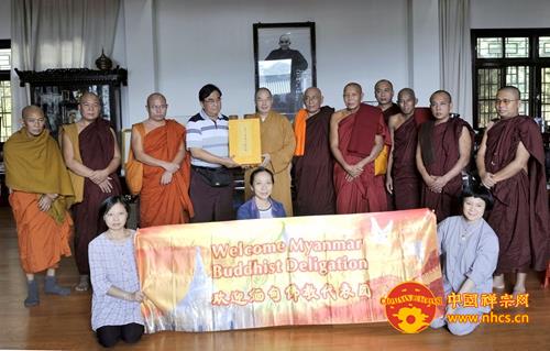 缅甸佛教代表团访问广东南华禅寺 传正大和尚赠六祖像纪念