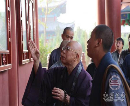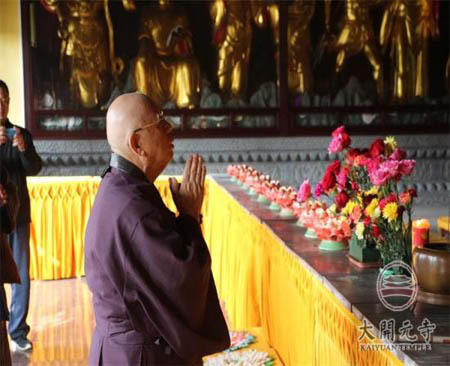 年近八旬的千叶长老在大开元寺知客师耀容法师的陪同下,从山门而入。在圆通宝殿、大雄宝殿、法堂,长老满怀虔诚,双手合十,一心参拜。
