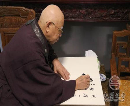 耀容法师陪同千叶长老在赵州院紫云堂饮茶谈禅,欢喜充满。耀容法师赠送了千叶长老大开元寺纪念茶碗作为纪念。千叶长老也把自己的题赠的墨宝请耀容法师转送给明憨法师,并欣然在签名簿上签名留念。