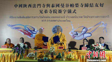 中国陕西法门寺与泰国曼谷帕荣寺缔结为兄弟友好寺院