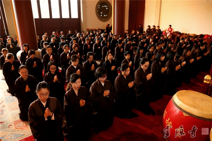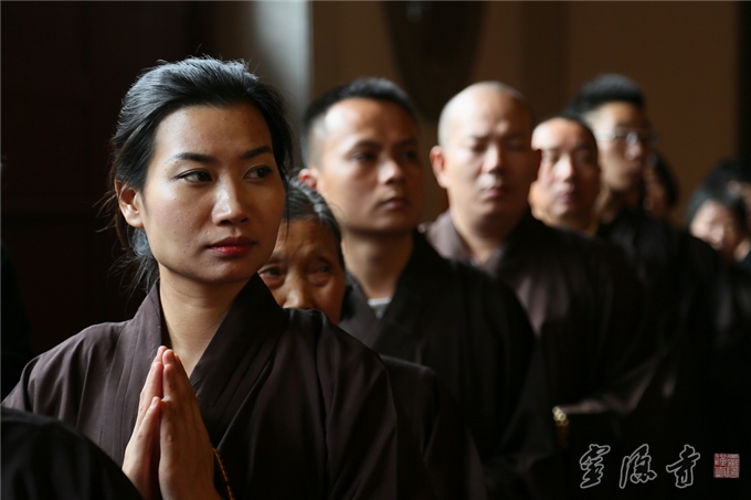 穿着咖啡色海青梳着马尾辫的一位师兄在一跪一拜庄严的皈依仪式中,眼泪情不自禁地落下来。她说:自己在苦海中不知轮回多少回,今天终于回了家,找到了究竟解脱的路。皈依以后的每一天,一定踏踏实实地学习和工作,做一个合格的在家居士……