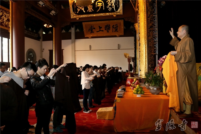2014年10月12日,农历九月十九,观世音菩萨出家日。灵隐寺方丈光泉大和尚为近300名来自全国各地的虔诚佛子新授三皈。