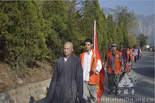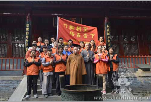 2014年10月25日至26日,少林寺都市禅堂朝圣团一行20人,在延竤法师的带领下,从登封市出发,步行20多公里,行脚少林寺,并三步一拜朝圣达摩洞,受到了少林寺法师释永信的亲切接待。