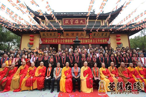 出席庆典诸山大德有:中国佛教协会副会长、上海市佛教协会会长、玉佛禅寺方丈觉醒大和尚,中国佛教协会副会长、江苏省佛教协会会长、镇江金山江天禅寺、焦山定慧寺方丈心澄大和尚,中国佛教协会常务理事、浙江省佛教协会会长、浙江雪窦山资圣禅寺方丈怡藏大和尚,中国佛教协会副秘书长、上海市佛教协会副会长、静安寺方丈慧明大和尚,中国佛教协会常务理事、浙江省佛教协会副会长 、杭州市佛教协会会长、灵隐寺方丈光泉大和尚,河北省张家口市佛教协会会长、云泉禅寺方丈果岚大和尚,上海市佛教协会副会长、法藏讲寺住持光慧大和尚,上海市佛教协会副会长、沉香阁住持定慧法师,上海市佛教协会秘书长、宝山净寺方丈世良大和尚,美国纽约东禅寺住持通智大和尚,泰州市佛教协会副会长、光孝寺方丈法空大和尚,金山区佛教协会会长、东林寺监院广德法师。无锡市佛教协会副会长、惠山寺方丈玉平大和尚,海门市佛教协会会长、海宁寺方丈心如大和尚,上海市金山区佛教协会会长、上海东林寺住持广德法师,上海崇明广福讲寺方丈玄光大和尚,上海闵行区佛教协会会长、七宝教寺住持慧平法师,上海奉贤区佛教协会会长、东海观音寺住持慧芝法师,上海市金山区佛教协会副会长、金山区松隐禅寺住持法定法师,上海奉贤区佛教协会副会长、奉贤二严寺住持智能法师,上海市青浦区佛教协会会长、青浦区报国寺住持昌智法师,上海市青浦区佛教协会副会长、青浦区天光寺住持能照法师,上海洪福寺住持圣怀法师,上海南山古寺灵宏法师,上海寿安寺住持惟觉法师,泰州姜堰古寿圣寺住持心海法师,苏州法螺寺贤宗法师。