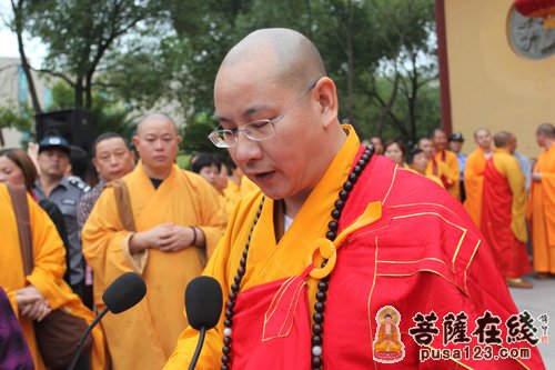 中国佛教协会副会长、江苏省佛教协会会长、镇江金焦二山方丈心澄大和尚致辞:“今天我们汇聚一堂,一起见证万寿古刹法院胜兴的空前盛况感到高兴。借此机会,我谨代表江苏省佛教协会对今天的庆典表示热烈的祝贺!祝愿万寿寺道业昌隆,梵刹曾辉!我们相信有各级领导的亲切关怀,有续建法师的慈心悲愿,有两序大众的勇猛精进,有广大居士的热心护持,万寿寺的明天一定会更加美好,灿烂辉煌!”