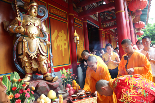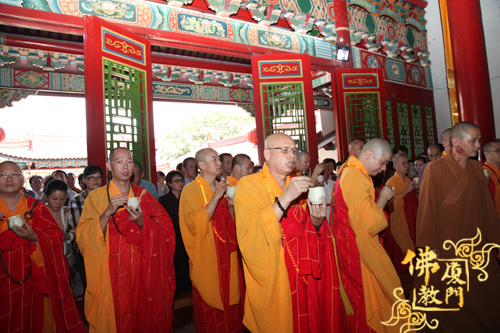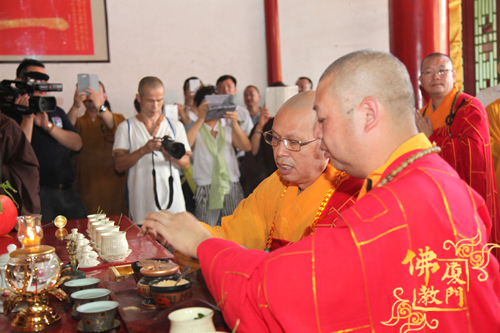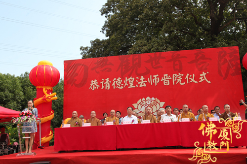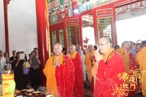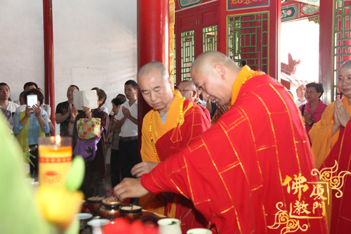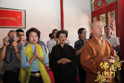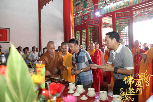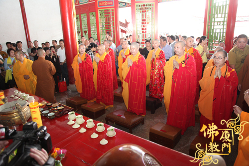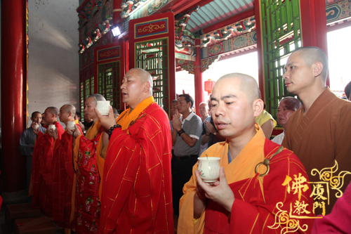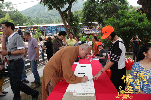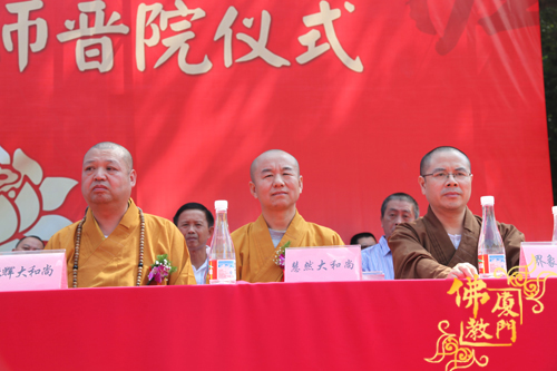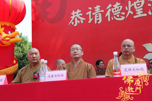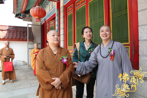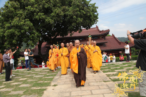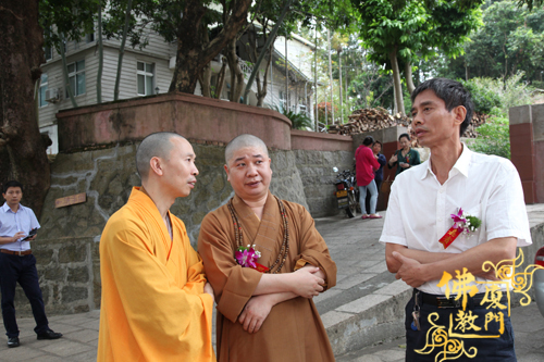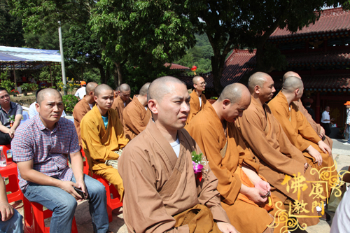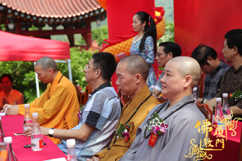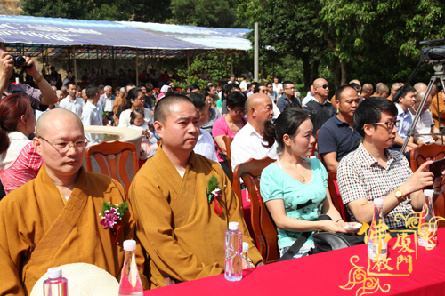 参加庆典的有:市民宗局副局长黄镇辉先生,龙海市民宗局长苏双来先生,市民宗局一处处长沈仲勇先生,市佛协会长、南普陀寺方丈则悟大和尚,市佛协常务副会长、观音寺住持定恒法师,香港三宝寺住持德辉法师,龙海市佛协会长、安福寺住持广宗法师,市佛协副会长、南普陀寺监院界象法师,市佛协副会长、鸿山寺住持法云法师,南普陀寺首座、南普陀寺慈善会常务副会长慧然法师,市佛协副会长、思明佛协会长、进明寺住持普端法师,市佛协副秘书长、梵天寺住持仁慈法师,市佛协副秘书长、湖里区佛协会长、天竺岩寺住持明德法师,市佛协副秘书长、日光岩寺住持胜恬法师,市佛协副秘书长、南普陀寺实业社主任曾全民先生,南普陀寺副寺兼衣钵弘来法师,南普陀寺知客法仪法师、戒舟法师、悟云法师、长恒法师,澳门中华宗教文化交流协会理事长周伯顺先生,福建省国际文化经济交流中心理事庄坚先生,中国山水书画院长陈明泉先生,厦门市盛辉厨具有限公司董事长胡添辉先生,厦门香味食品有限公司董事长柯成昆先生,灿邦国际地产董事长陈江洪先生等嘉宾及厦门各寺院法师、居士、南普陀寺义工等。