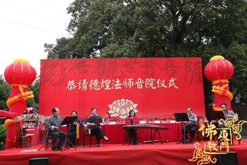 庆典仪式开始前,与会嘉宾欣赏了南音演奏。10点30分,庆典仪式开始,在司仪陈运莲的主持下,龙海市民宗局长苏双来首先致辞祝贺,龙海市佛协会长广宗法师代表龙海市佛协在致辞中说,德煌法师住持金仙岩如千里马遇到伯乐,金仙岩在德煌法师的住持下定会发扬光大,接引一方信众到达解脱彼岸,为龙海佛教写上新的篇章。德煌法师致谢辞,表示将兢兢业业,至诚奉公,严于律己,领众熏修,发扬佛教爱国爱教的优良传统,服务信众,饶益有情,为构建和谐社会做出更大的贡献。
