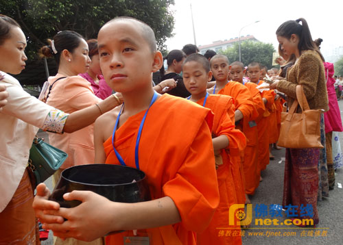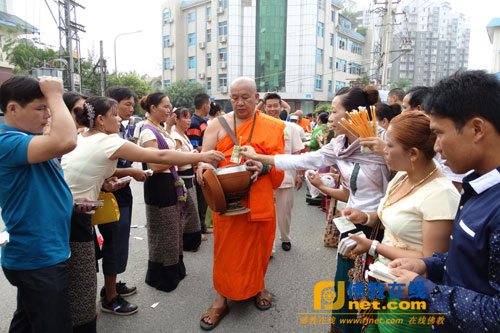 10月10日上午,中国佛教协会副会长、云南省佛教协会副会长、西双版纳总佛寺住持祜巴龙庄勐大长老带领228位僧众走出总佛寺进行托钵,接受大众供养。