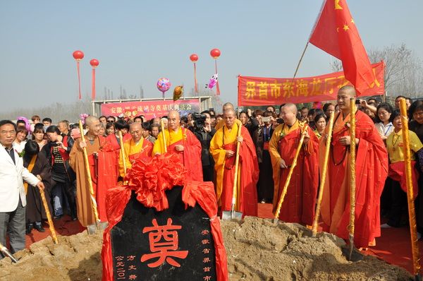 领导嘉宾、高僧大德为奠基碑挥锹培土