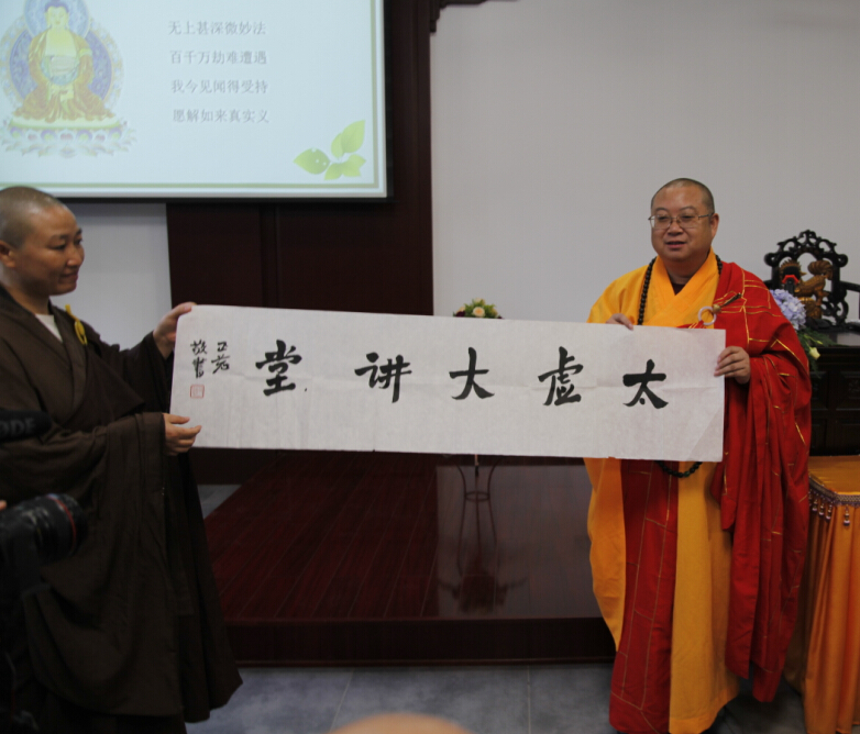 上午八点,正慈法师在莲溪寺女众的恭敬迎请中来到了莲溪寺,在大雄宝殿拈香礼佛,并在方丈室将自己的著作《禅就是这样》等赠与了慈学老法师、印宗法师和宝通寺方丈隆醒大和尚。八点半,在印宗法师的主持下,正慈法师来到了新落成的太虚讲堂,将自己的题字“太虚大讲堂”赠与了武昌佛学院,并捐款支持佛教教育。太虚讲堂是武昌佛学院尼众部的专属讲堂,是为纪念武昌佛学院的创始人太虚大师而设立,而正慈法师也成为了在太虚讲堂首开法席的高僧。