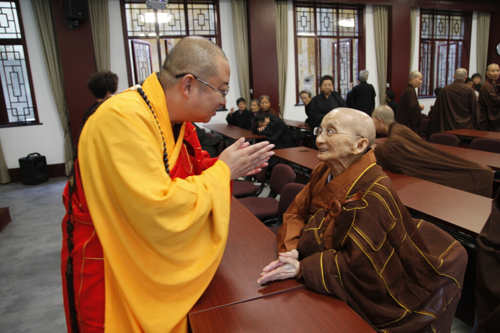 讲座中,正慈法师旁征博引,深入浅出,义理契合于当下,博得了众人热烈的掌声。中场休息时,一位居士感恩于正慈法师的慈悲开示,深情朗诵了一首《当我说我是佛教徒时》;正慈法师就提出的诸多问题一一作出解答,听众亦是法喜充满,赞叹不已。讲座结束后,正慈法师与慈学老法师进行了亲切的交谈。慈学老法师说,佛教文化是中国传统文化的重要组成部分;两人对恢复武昌佛学院男众班一事表示关心,并期待武昌佛学院重现当年的辉煌。