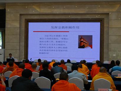 本次培训班由国家宗教局副局长蒋坚永、一司司长刘威、政法司法规处处长周怡文,云南省民族宗教事务委员会副主任马开能等宗教部门领导授课,从我国宗教和宗教政策、当前中国佛教面临的机遇和挑战、宗教法规、南传佛教教风建设与“和谐寺庙”的创建等主题,为学员们全面介绍、分析了我国宗教状况,当前佛教工作以及南传佛教未来发展的方向。