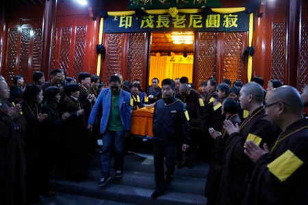 10月28日清晨至上午,印茂长老尼荼毗法会、灵骨安放法会、追思法会先后在望秦山殡仪馆和炉峰禅寺祖师塔、报恩堂隆重举行。炉峰禅寺方丈净芳法师亲临主法,大众排班,念佛瞻礼,祈愿长老尼西归净土,得成正果,花开见佛,乘愿再来,化度有情。四众弟子、各方善信自发追悼,诵经祈愿,绵绵追思,依依惜别。