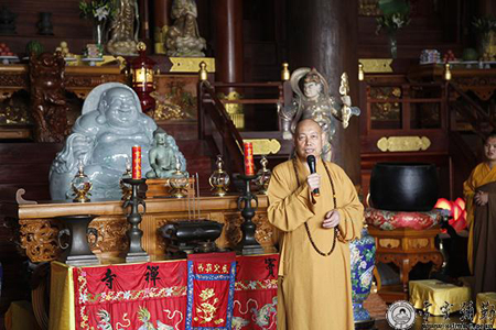道慈法师重点参观了雪窦寺大慈摩尼之殿、露天弥勒大佛等主要建筑及亲切的关怀了寺内法师学修生活状况。道慈法师指出:雪窦山极具有成为佛教五大名山的潜质,在怡藏法师二十年来不断努力下,雪窦寺也成为奉化乃至浙江省内弘扬佛法圣地,望你们继续努力,不断开拓进取,为五大名山的建设作出应有的贡献。
