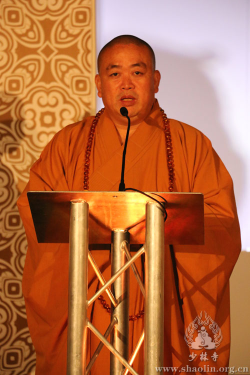 永信方丈在致辞中阐述了少林文化的内容与特质,提出文化交流是少林寺的优良传统,而佛教的交流在于交心,通过见面,付诸一笑,以心传心,同样达到交流的目的。“少林文化是人类文化遗产,少林寺简单、智慧的生活方式,对我们追求解脱、追求智慧有着重要的指导作用。这次文化节活动,既有少林功夫考功大会、少林禅修体验、少林文化系列讲座,还有少林佛医,少林僧侣画展等,直观立体地展示了少林禅武医艺文化,值得大家参与进来”,永信方丈还提到,前两天拜会了伦敦印度教、天主教、伊斯兰教、基督教、锡克教等宗教界人士,学到很多知识与经验,这种平等对话与交流的形式,亦能促进不同宗教之间的和谐共生。最后,永信方丈真诚地邀请各位朋友能抽空到少林寺参观体验,感受千年少林文化,一起分享人类文化遗产。